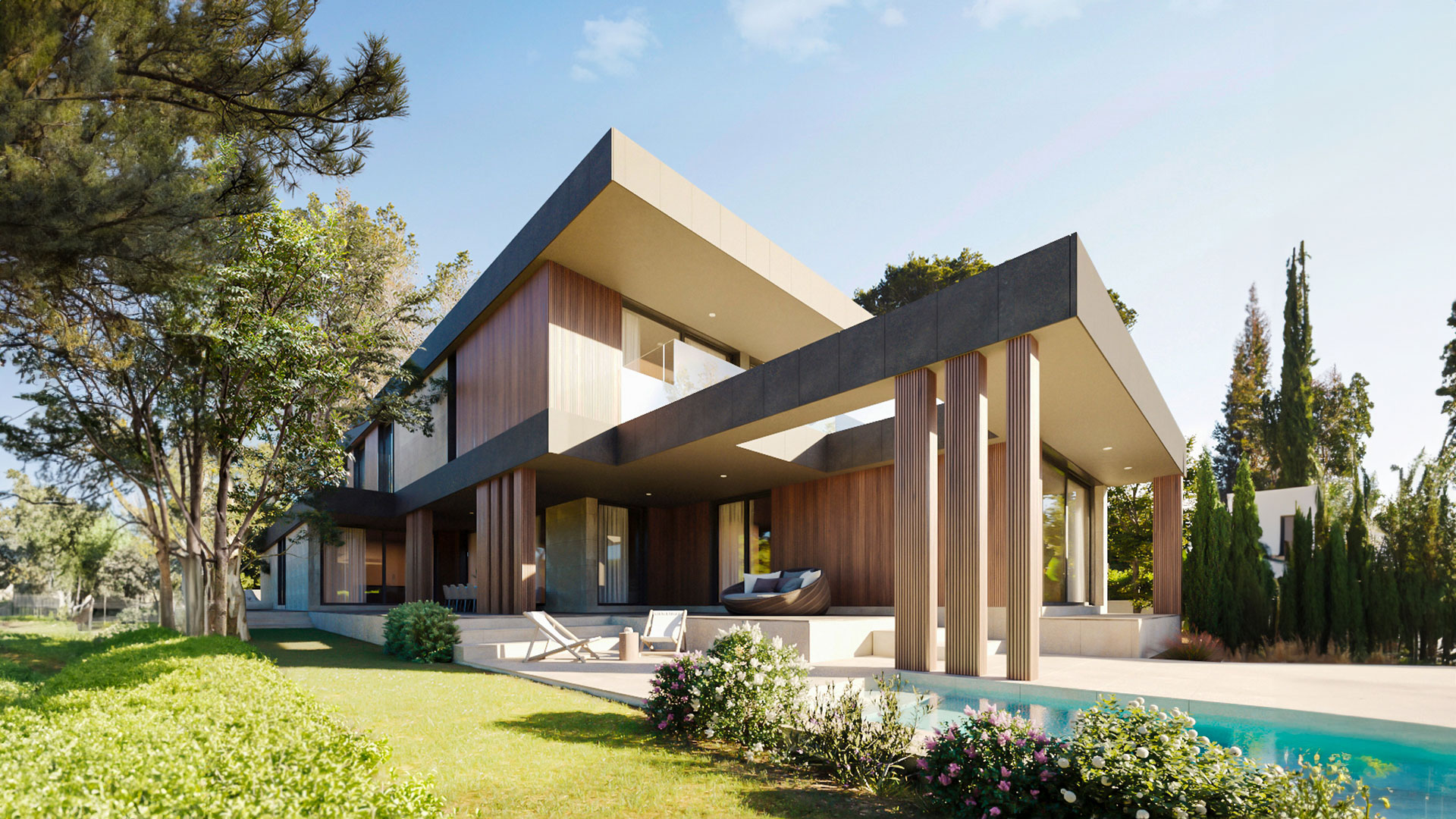 The realisation of this project went through various phases. First, one of the models from our catalogue of 111 modular houses, the Heidelberg model, was used as a starting point. This design consists of an L-shaped floor plan, but due to the characteristics of the client’s plot, a linear structure was designed to optimise the use of the plot. This structure, together with the panels of the façade and the verandas, gives volume to the house and connects its characteristics with the surroundings.