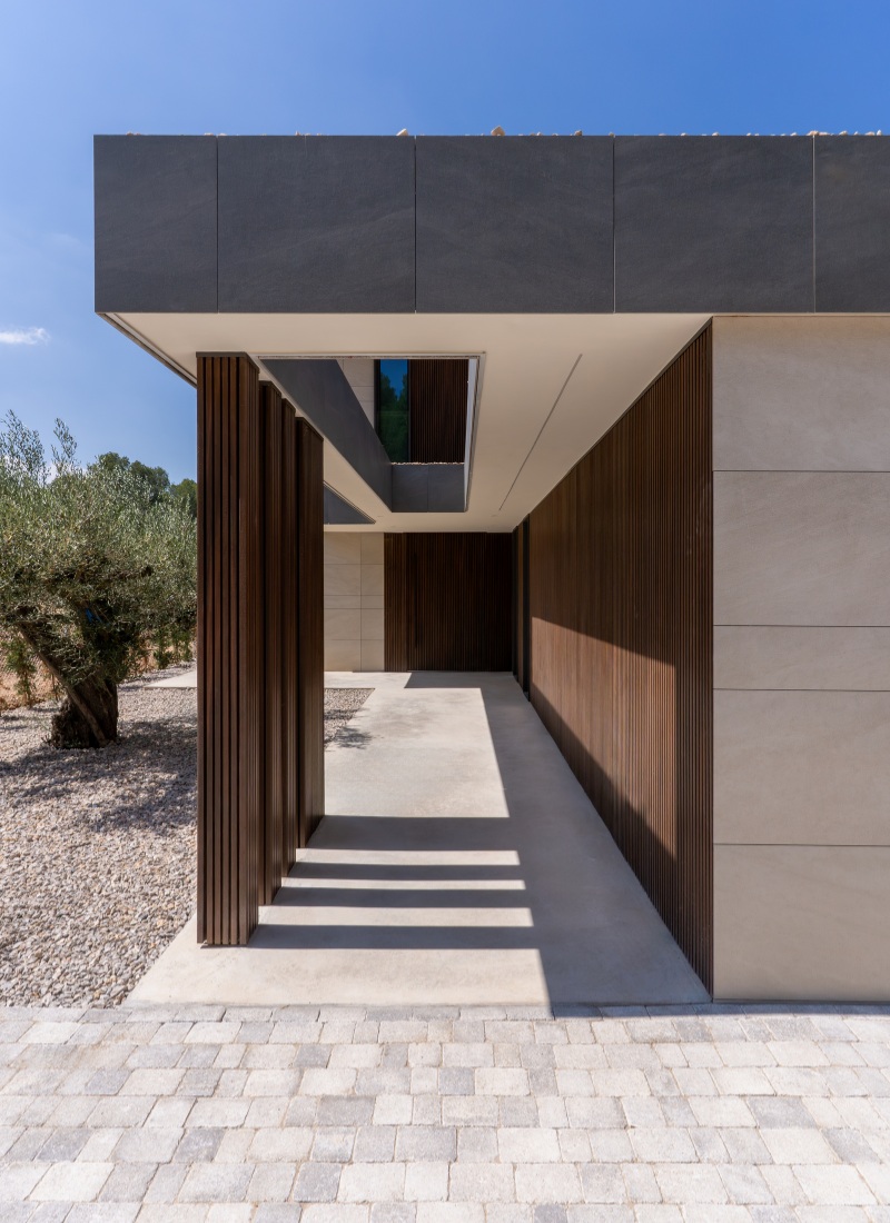 This custom-designed house by Villas inHAUS was originally based on one of our catalogue models, but several changes were made. These changes were mainly due to the elongated shape of the plot, which meant that the house had to be adapted to a long, linear shape in order to make the best use of the land. The installation of the 11 modules that make up the prefabricated house and the two canopies was completed in just half a day. The slope of the plot was overcome without difficulty thanks to the experience of the inHAUS assembly team.