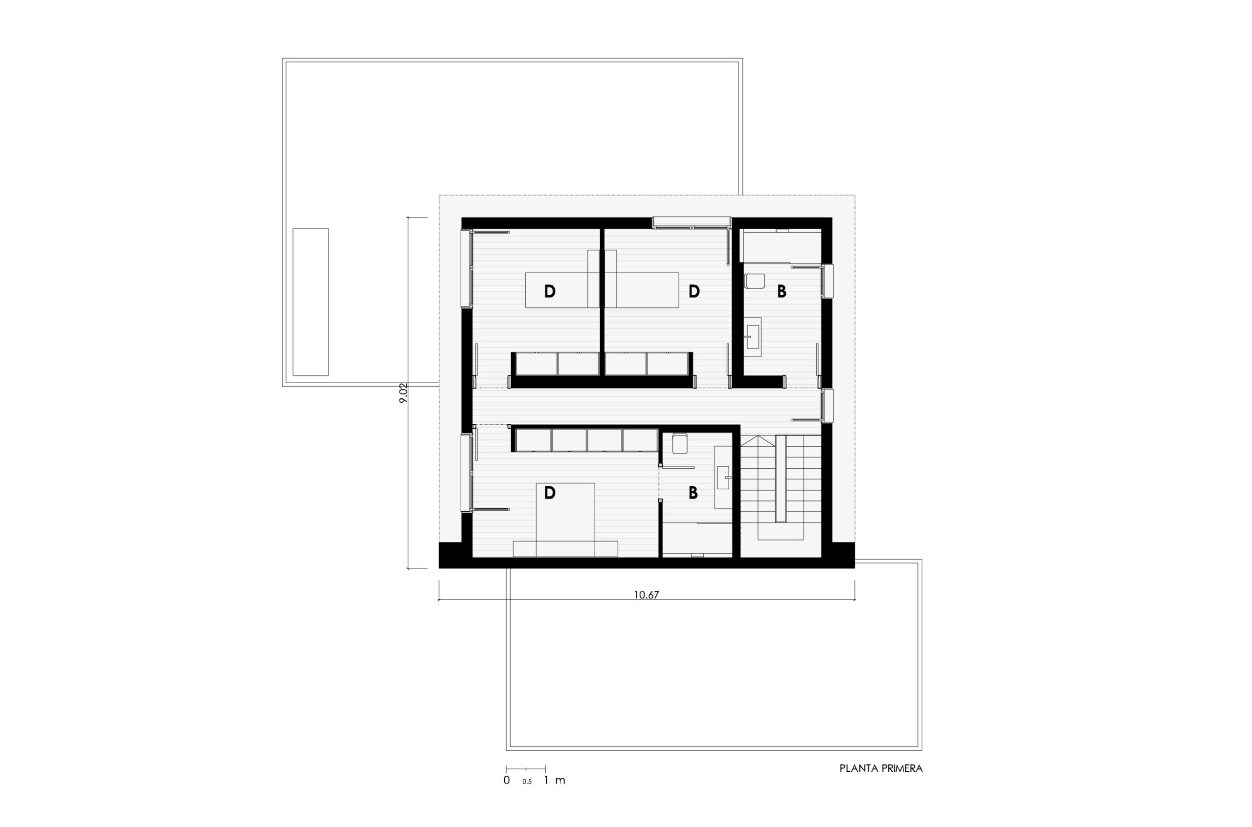 Das Nachtprogramm des Hauses wird im ersten Stock mit drei großen Schlafzimmern und einem Badezimmer vervollständigt.
